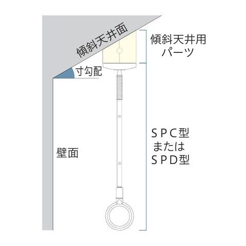 ※SPC型・SPD型は水平~2寸勾配未満(11.3°未満)まではそのままで取付けてご使用いただけます。2寸勾配以上の傾斜天井には必ず傾斜天井用パーツをご使用ください。