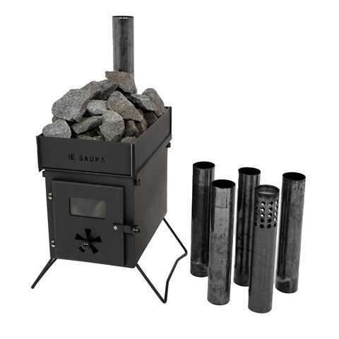 - セット内容:IESAUNAテント・テント用袋、バイオストーブ・煙突(予備付)、サウナストーン8kg、ファイヤーグローブ、消火栓、専用バット、トング