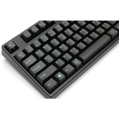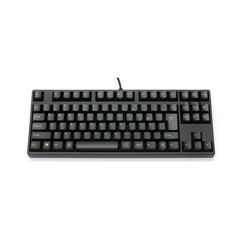 マットブラック色のフレームにアスファルト地のキーキャップを搭載したキーボード。フレームとキーキャップに統一感を持たせ、鮮明なチェレステ色の文字はキーボードに高級感をもたらします。