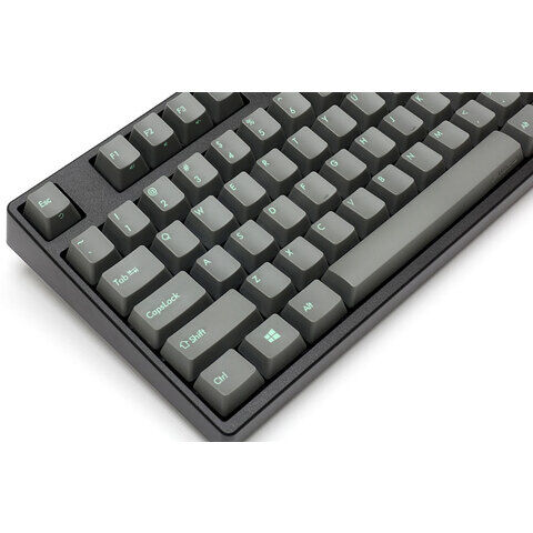 マットブラック色のフレームにスカイグレー地のキーキャップを搭載したキーボード。同系色のフレームとキーキャップがモダンを表し、チェレステ色の文字が粋を演出いたします。