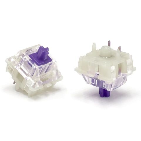 ◆紫軸(押下圧:45cN)は茶軸(押下圧:55cN)より押下圧が10cN軽いタクタイルタイプ。