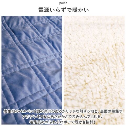 表生地のベルベット調の光沢のあるがリッチな触り心地と、裏面の蓄熱ボアがプレミアムなあたたかさで包み込んでくれる♪