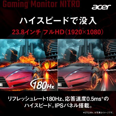 フルHD(1920×1080)パネルの鮮明な画面に、リフレッシュレート180Hz、応答速度0.5ms(GTGMin.)のハイスピード。