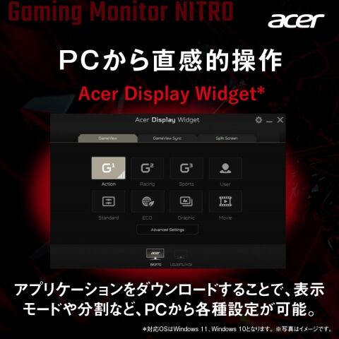 Acer Display Widgetをダウンロードしてお手元のパソコンにインストールすることにより、