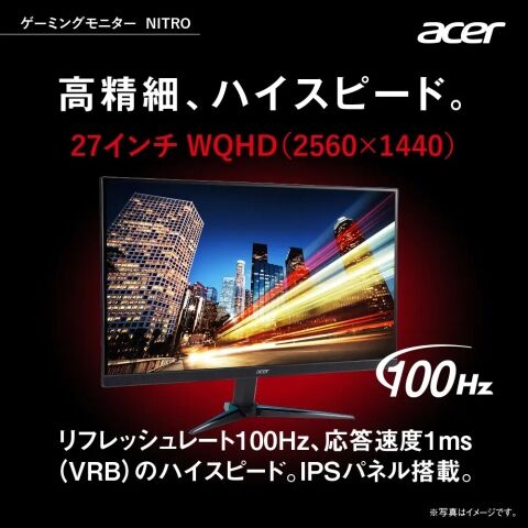 Acer|エイサー ゲーミング液晶ディスプレイ(27型/IPS/WQHD 2560×1440/100Hz/1ms/HDR10/HDMI2.0/DP1.4/VESA/3年保証)(ブラック) Acer Nitro VG270UEbmiipx 【返品種別A】