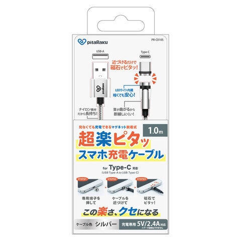 Bearmax(ベアーマックス) マグネット着脱式 Type-C 超楽ピタッスマホ充電ケーブル 1m(シルバー) PR-C010S 【返品種別A】のレビュー
