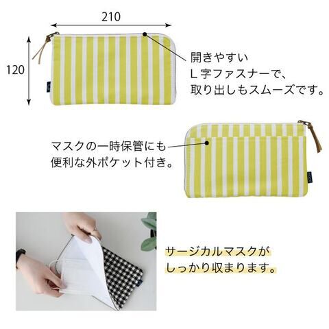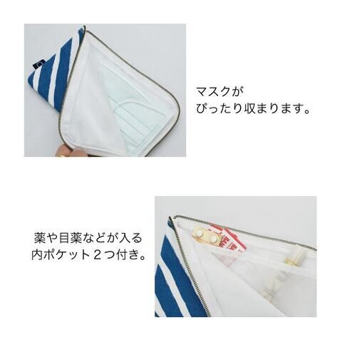 ◆サージカルマスクはもちろん、立体マスクもぴったり入るサイズ感。ポケットも充実しているので、お薬やリップなどの小物も収納できます。