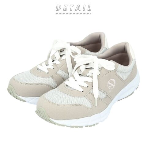 肌触りのよい合成繊維とスエード調の生地を貼り分けたアッパーとスタイリッシュなデザインで、スポーツやウォーキングにもぴったり。