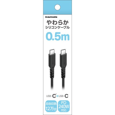 多摩電子 PD240W USB-C to Cシリコンケーブル 0.5m(ブラック) tama's TSC305CC05K 【返品種別A】