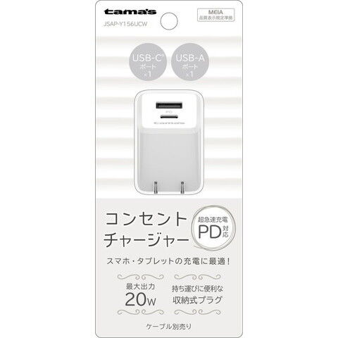 多摩電子 PD20W コンセントチャージャー USB C+A(ホワイト)【Joshinオリジナルモデル】 tama's JSAP-Y156UCW 【返品種別A】