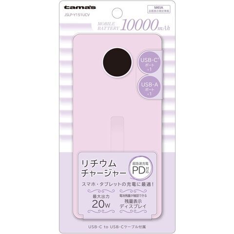 多摩電子 PD20W モバイルバッテリー10000mAh(ラベンダー)【Joshinオリジナルモデル】 JSLP-Y151UCV 【返品種別A】