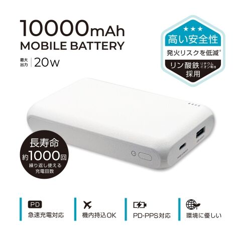 オズマ リン酸鉄モバイルバッテリー 10000mAh(ホワイト)【Joshin専売モデル】 JOLFPUC100-CCWH 【返品種別A】