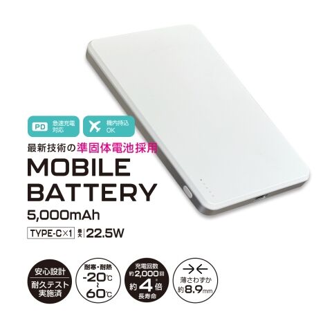 オズマ 準固体モバイルバッテリー 5000mAh(ホワイト)【Joshin専売モデル】 JOSSLC50-CCWH 【返品種別A】