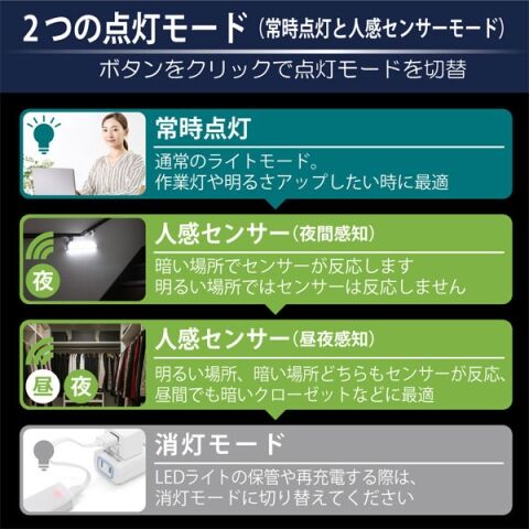 ◆2つの点灯モード(常時点灯と人感センサーモード)