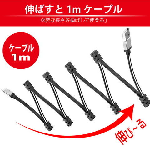 ◆マグネットで簡単に結束して持ち運べる蛇腹タイプの充電&通信ケーブル