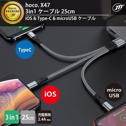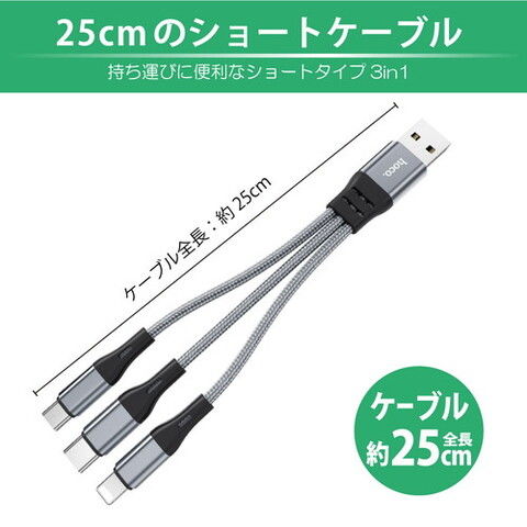 hoco. 3in1ケーブル 25cm hoco X47(メタルグレー) X47-3IN1S-MG 【返品種別A】