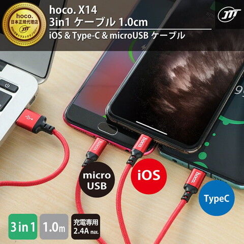 hoco. 3in1ケーブル 1m hoco X14(ブラック) X14-3IN1-BK 【返品種別A】