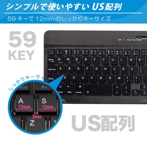 ポータブルサイズのキーボードで薄さが約6mmとスリム設計。