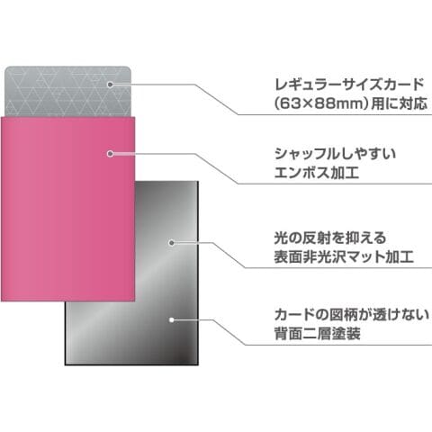 レギュラーサイズ(63×88mm)のカードに対応した、トーナメントシーンでも活躍するPROグレードのスリーブです。