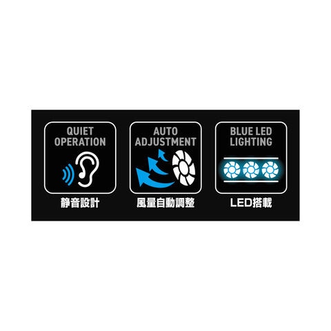 ●動作中はファン内部のLEDライトが青色に発光、ひと目で動作状況がわかります。