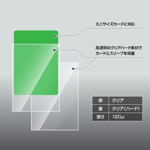 ミニサイズ(59×86mm)のカードに対応した透明スリーブです。