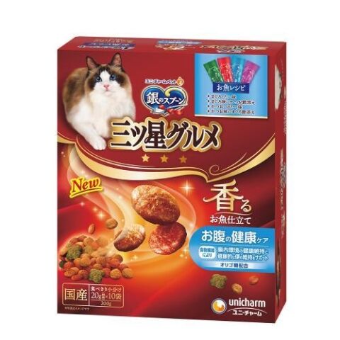 ユニ・チャーム 銀のスプーン 三ツ星グルメ 香るお魚仕立て お腹の健康ケア お魚レシピ 4種のアソート 200g(20g×10袋) ミツホシカオルオナカケンコウケア200G 【返品種別B】