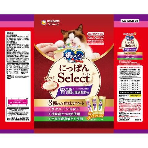 ユニ・チャーム 銀のスプーン おやつ にっぽんSelect 腎臓の健康維持用 とろリッチ 3種アソート 6g×18本 トロリツチジンソウ3シユ108G 【返品種別B】