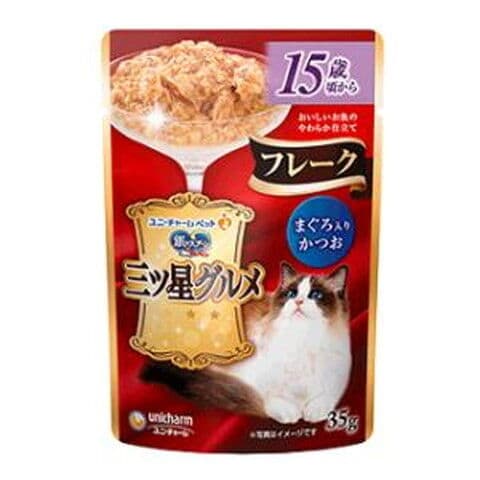 ユニ・チャーム 銀のスプーン 三ツ星グルメ パウチフレーク 15歳頃から まぐろ入りかつお 35g ギンスプミツボシP15マグロ 【返品種別B】