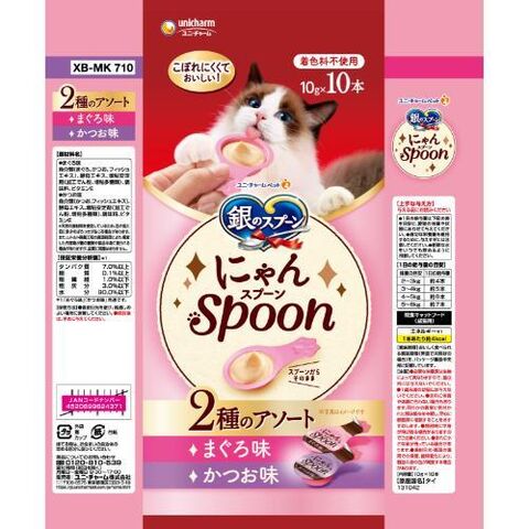 ユニ・チャーム 銀のスプーン 三ツ星グルメ おやつ にゃんSpoon 2種のアソート まぐろ&かつお味 100g(10g×10本) ニヤンスプ-ンマグロ&カツオ100G 【返品種別B】