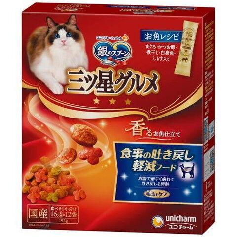 ユニ・チャーム 銀のスプーン 三ツ星グルメ 香るお魚仕立て 食事の吐き戻し軽減フード お魚レシピ 192g(16g×12袋) ミツボシGオサカナハキモドシ192G 【返品種別B】