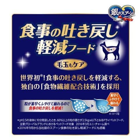 ◆独自の食物繊維配合技術で、お腹の中で粒がすばやくふやけて崩れるので、ドライフードを粒のまま吐き出すことを軽減します。