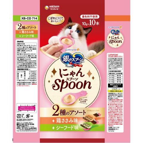 ユニ・チャーム 銀のスプーン 三ツ星グルメ おやつ にゃんSpoon 2種のアソート 鶏ささみ&シーフード味 100g(10g×10本) ニヤンS2シユササミシ-フ-ド100G 【返品種別B】