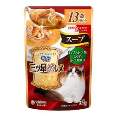ユニ・チャーム 銀のスプーン 三ツ星グルメ パウチスープ 13歳頃から まぐろ・かつおにしらすとかつお節入り 35g ギンスプ13サイシラスカツブシ35 【返品種別B】
