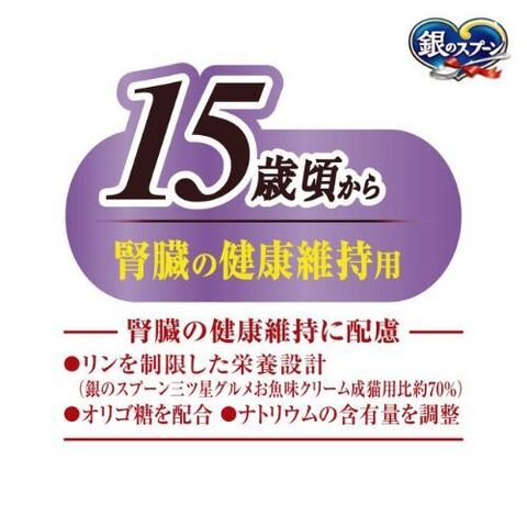 ・ビタミンEを強化した総合栄養食なので、15歳頃からの愛猫の健康維持により、免疫力維持をサポート(銀のスプーン三ツ星グルメお魚味クリーム成猫用比約475%)