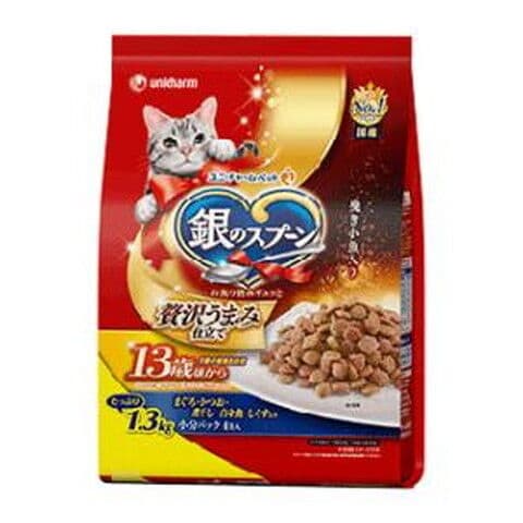 ユニ・チャーム 銀のスプーン 贅沢うまみ仕立て 腎臓の健康維持用 13歳が近づく頃から お魚づくし 1.3kg ギンノスプ-ン13サイ1.3KG 【返品種別B】