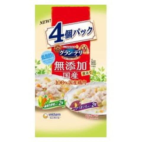 ユニ・チャーム グラン・デリ 無添加仕立て 国産パウチ 成犬用 緑黄色野菜入り×さつまいも入り Gパウチセイケンヤサイイモ70G4コ 【返品種別B】