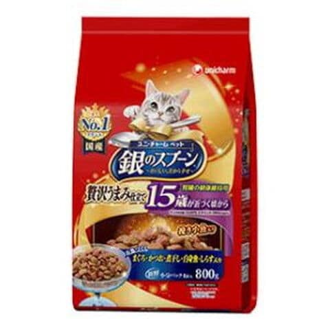 ユニ・チャーム 銀のスプーン 贅沢うまみ仕立て 腎臓の健康維持用 15歳が近づく頃から お魚づくし 800g ギンノSP15ジンゾウケンコウ 【返品種別B】