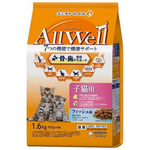 ユニ・チャーム AllWell 健康に育つ子猫用 フィッシュ味挽き小魚とささみフリーズドライパウダー入り 1.6kg (400g×4袋) ALLWELLコネコFアジ1.6 【返品種別B】
