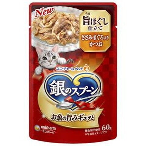 ユニ・チャーム 銀のスプーンパウチ 旨ほぐし仕立て ささみ・まぐろ入りかつお 60g ギンスプ-ンPウマホグシササミ60 【返品種別B】