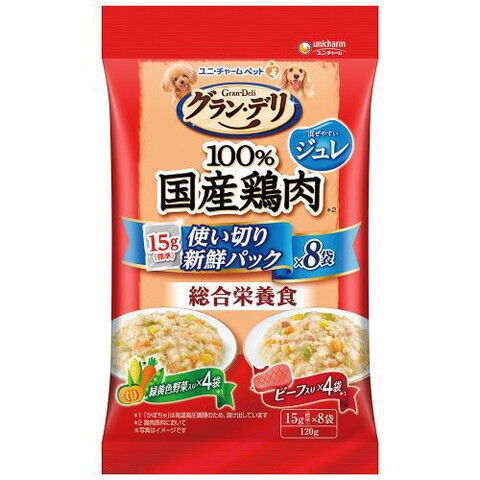 ユニ・チャーム グラン・デリ 国産鶏肉パウチ 使い切り新鮮パック 総合栄養食ジュレ 成犬用 緑黄色野菜入り&ビーフ入り 120g(15g×8) Gデリジユレセイケンビ-フ120G 【返品種別B】