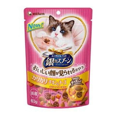 ユニ・チャーム 銀のスプーン おいしい顔が見られるおやつ カリカリ チキン&チーズ 60g オイシカオオヤツカリカリチキンチズ60 【返品種別B】