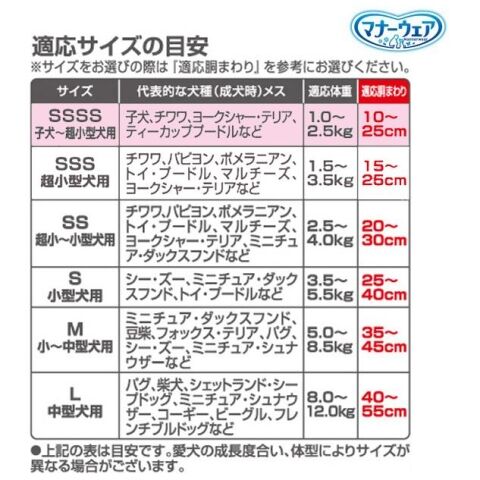 ※愛犬の成長度合い、体型によりサイズが異なる場合がございます。