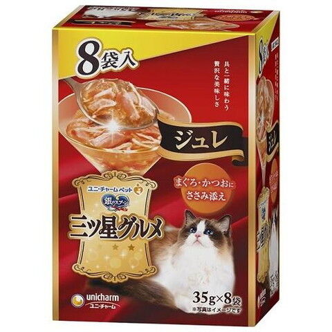 ユニ・チャーム 銀のスプーン 三ツ星グルメ パウチ ジュレ まぐろ・かつおにささみ添え 280g(35g×8袋) ミツボシG Pジユレササミ8P 【返品種別B】
