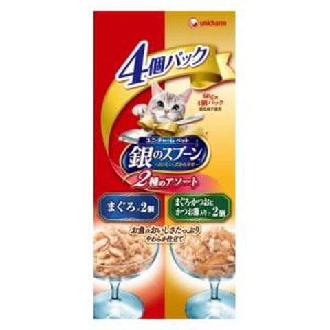 ユニ・チャーム 銀のスプーン パウチ 4個パック まぐろ/まぐろ・かつおにかつお節入り 60g×4個 ギンスプPマグカツオブシ240G 【返品種別B】