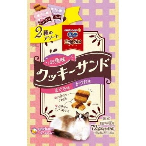 ユニ・チャーム 銀のスプーン 三ツ星グルメ お魚味クッキーサンド 2種のアソートまぐろ&かつお味 72g(6g×12袋) サカナCサンド2シユマグロカツオ72 【返品種別B】