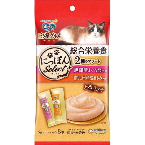ユニ・チャーム 銀のスプーン 三ツ星グルメおやつ にっぽんSelect 総合栄養食とろリッチ 2種のアソート まぐろ節&鶏ささみ使用 48g(6g×8本) トロリツチ2シユマグロフシ&ササミ48 【返品種別A】