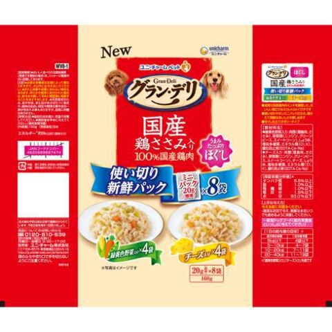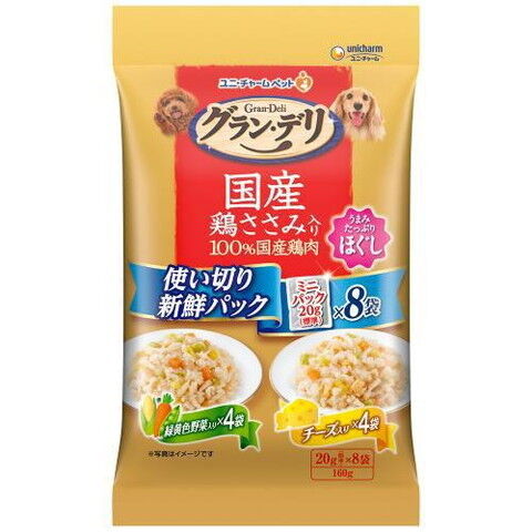 ユニ・チャーム グラン・デリ 国産鶏ささみ入りパウチ 使い切り新鮮パック ほぐし成犬用 緑黄色野菜入り&チーズ入り 160g(20g×8) GDトリPセイケンヤサイチ-ズ160G 【返品種別B】