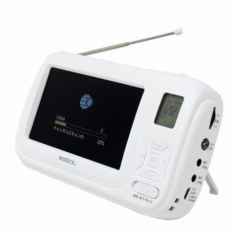 WINTECH 手回し充電ワンセグテレビ/ラジオ(ホワイト) WINTECH TVR-L38R 【返品種別A】
