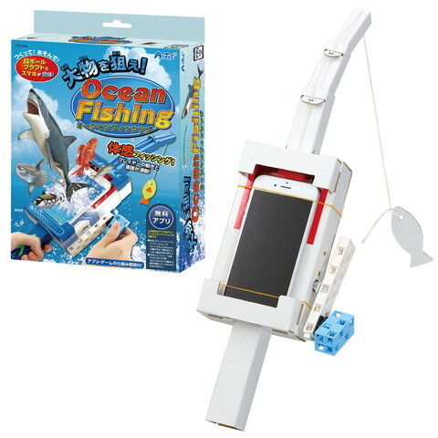 「つくってあそんで! 大物を狙え! オーシャンフィッシング」は、ダンボール工作キットにスマホアプリを連動させ、臨場感溢れる釣りゲームで遊ぶことができるキットです。