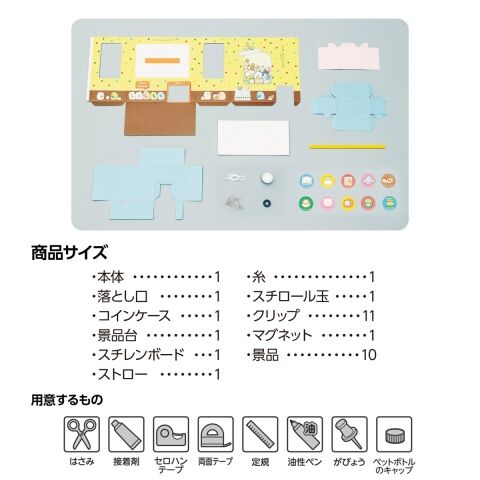 駄菓子になったすみっコぐらしのキャラクターを吊り上げるクレーンゲーム貯金箱